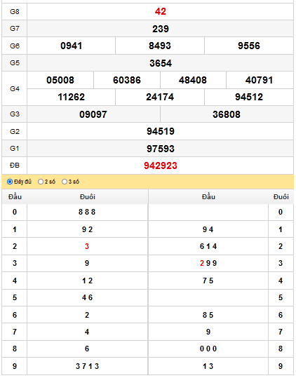 - Giải đặc biệt: đầu 5 – đuôi 8