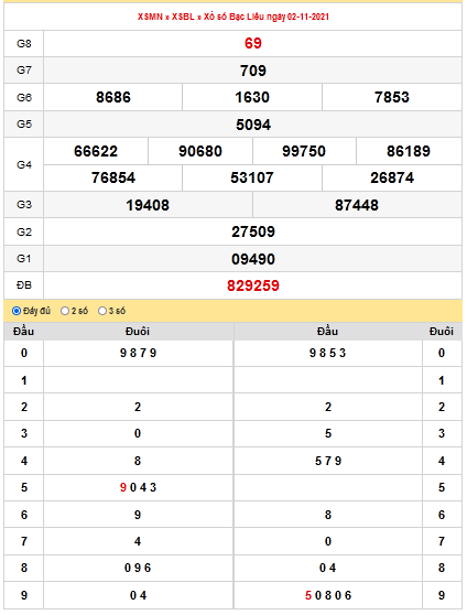 Trước khi dự đoán kết quả xổ số Bạc Liêu ngày 09/11/2021 mời các bạn cùng xem lại kqxsbl ngày 02/11/2021 tại đây :