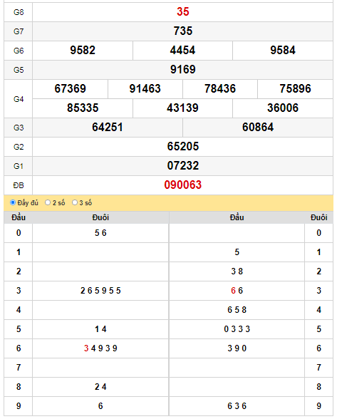 - Bạch thủ đề: Đầu 6 đuôi 3 Tổng 09