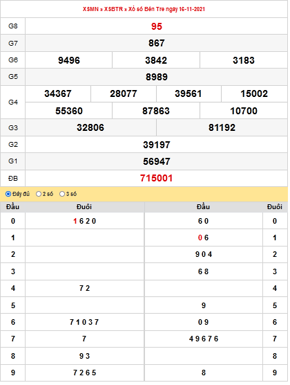 Trước khi dự đoán kết quả xổ số Bến Tre ngày 23/11/2021 mời các bạn cùng xem lại kqxsbt ngày 16/11/2021