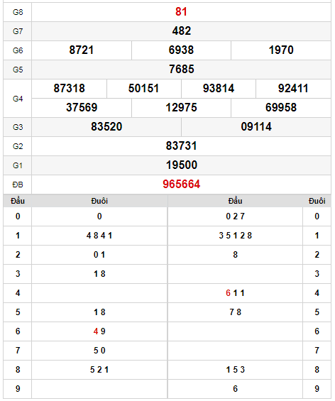 - Giải đặc biệt: đầu 0 – đuôi 7
