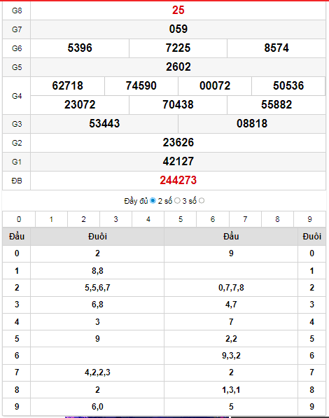- Giải đặc biệt: đầu 4 – đuôi 5