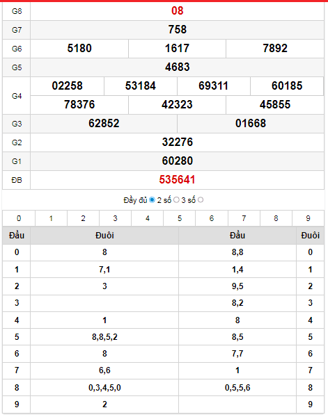 - Đuôi về nhiều nhất: 7