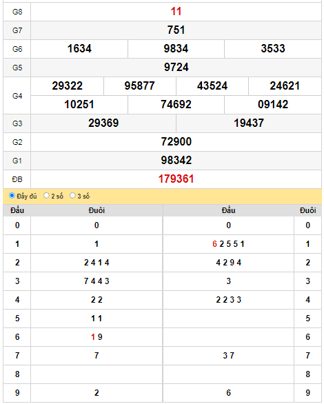 - Giải đặc biệt: đầu 7 – đuôi 8