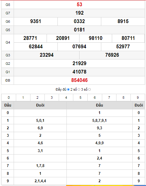 - Giải đặc biệt: đầu 6 – đuôi 5
