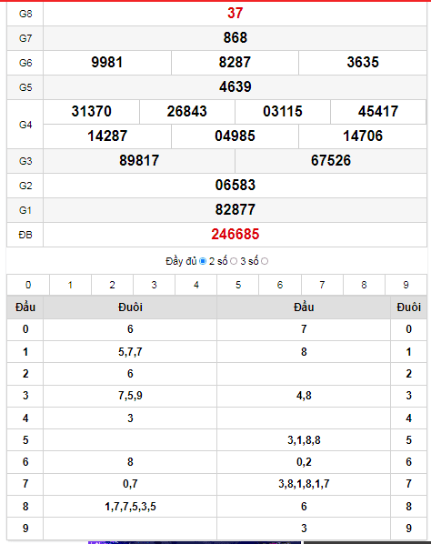- Giải đặc biệt: đầu 5 – đuôi 7