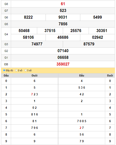 - Giải đặc biệt: đầu 1 – đuôi 9