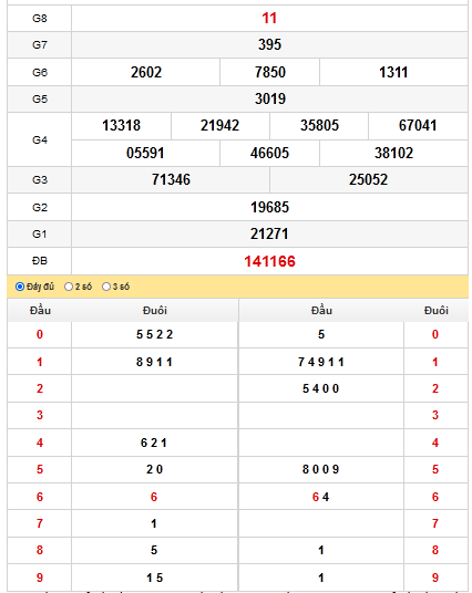 - Giải đặc biệt: đầu 7– đuôi 7