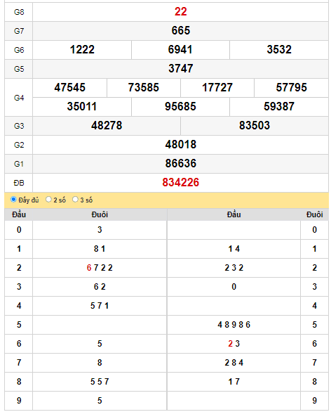 - Giải đặc biệt: đầu 0 – đuôi 6