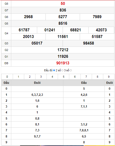 - Giải đặc biệt: đầu 8 – đuôi 1