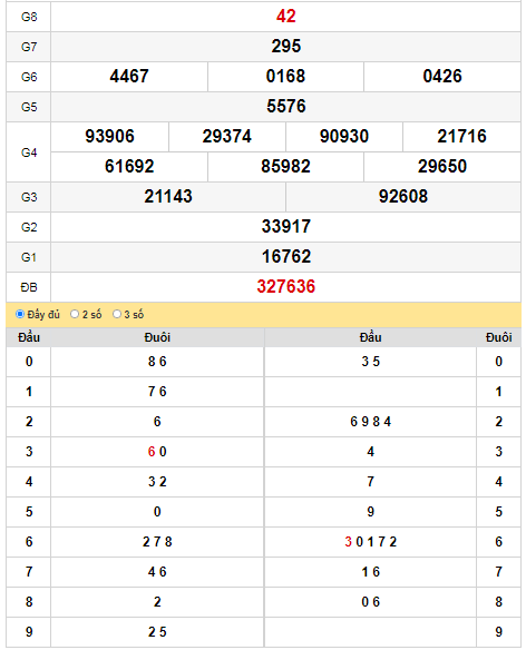 - Giải đặc biệt: đầu 0 – đuôi 7