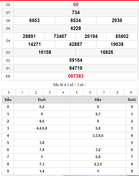 - Giải đặc biệt: đầu 9 – đuôi 6