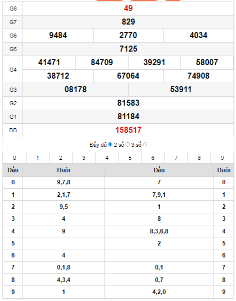 - Lô 3 càng : 484 – 291 – 908