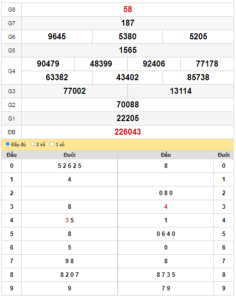 - Giải đặc biệt: đầu 6 – đuôi 7