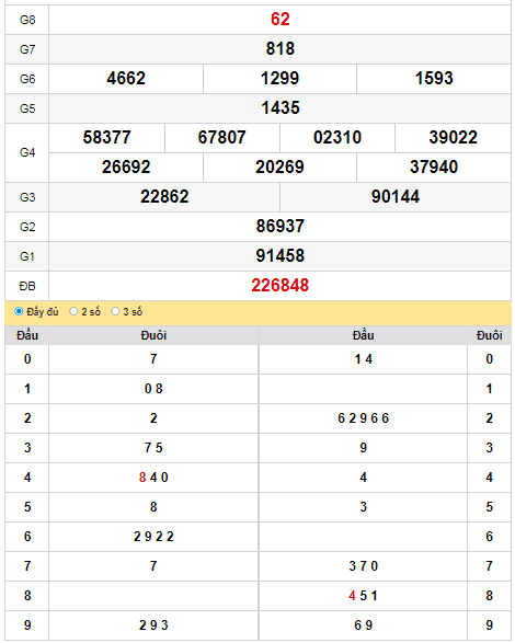 - Giải đặc biệt: đầu 3 – đuôi 3