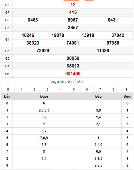 - Giải đặc biệt: đầu 3 – đuôi 3