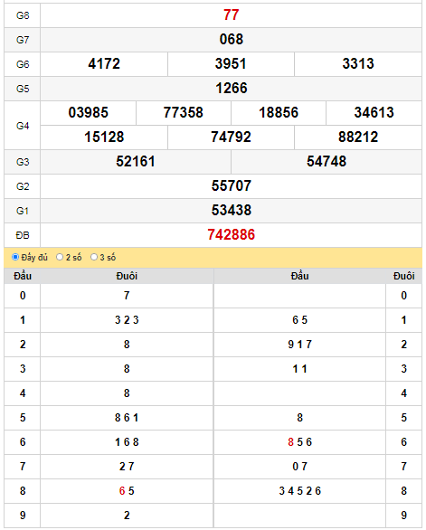 - Giải đặc biệt: đầu 8 – đuôi 9