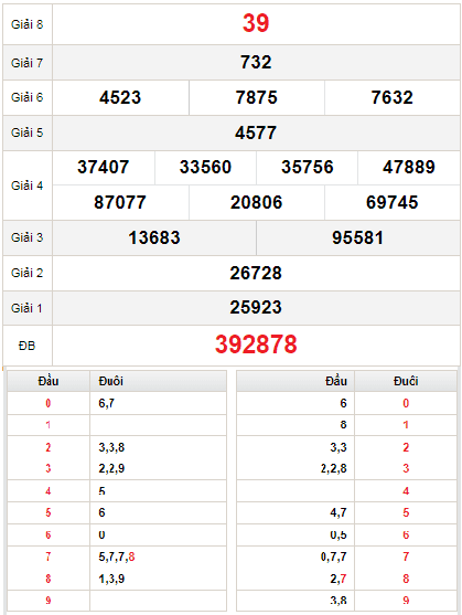 - Giải đặc biệt: đầu 9 – đuôi 8