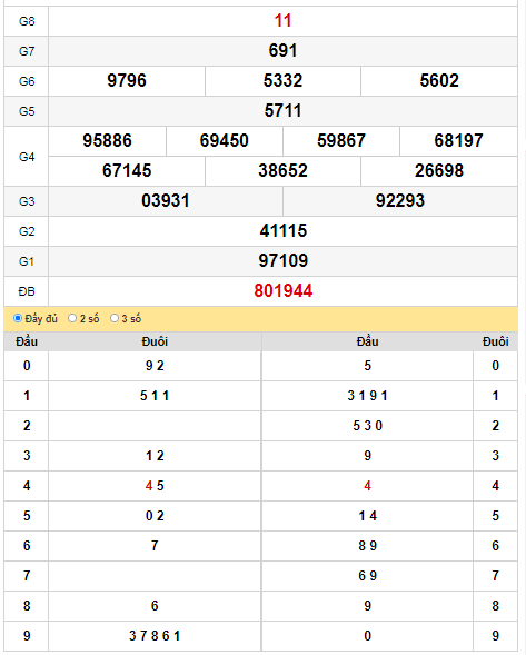 - Đuôi về nhiều nhất: 2