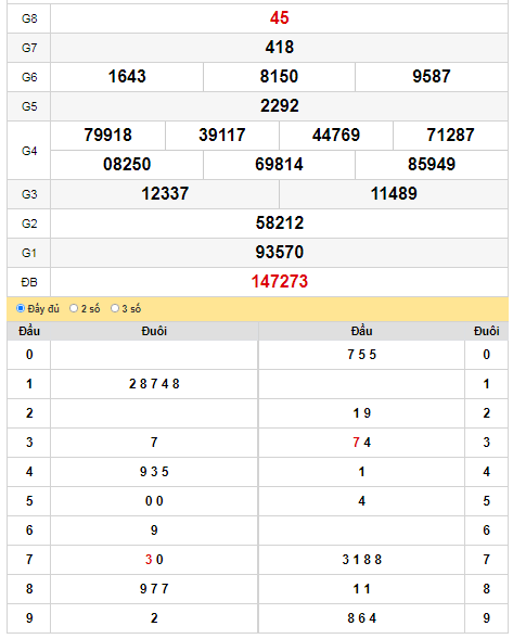 - Giải đặc biệt: đầu 3 – đuôi 4