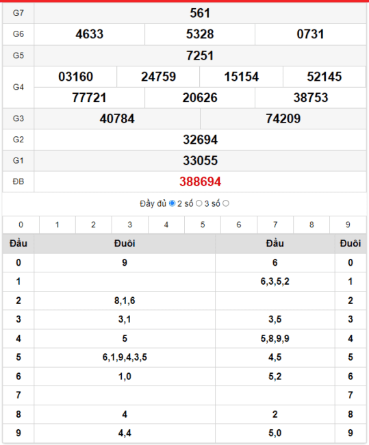 - Giải đặc biệt: đầu 6 – đuôi 5