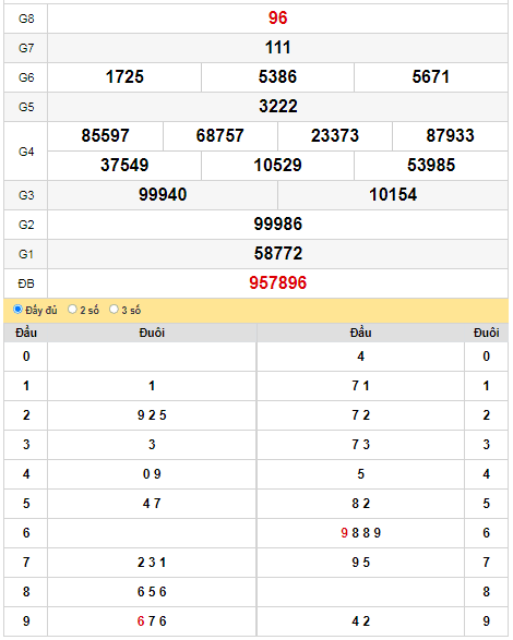 - Giải đặc biệt: đầu 6 – đuôi 7