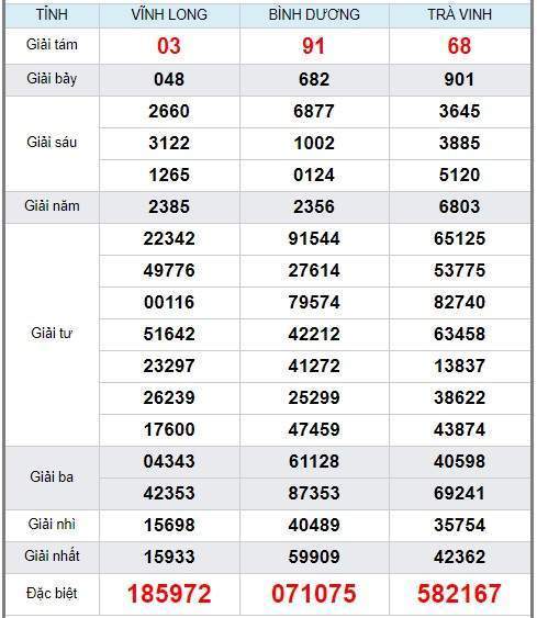Sau đây là thống kê kết quả xổ số trong thời gian gần đây của nhà đài này: