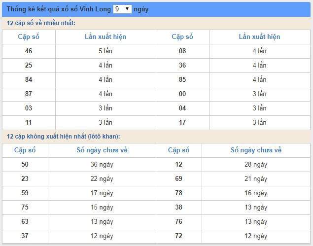 Thống kê nhanh cho tuần vừa qua của nhà đài xổ số trên: