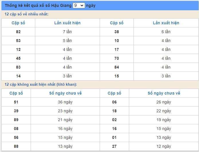 Thống kê nhanh cho tuần vừa qua của nhà đài xổ số trên: