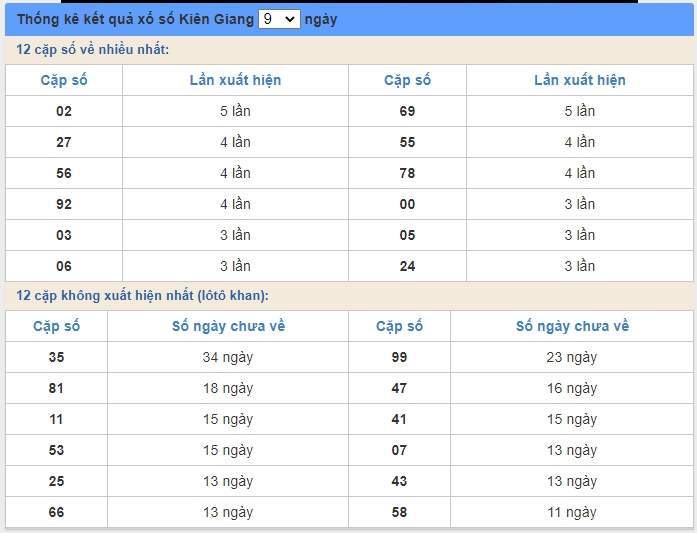 Thống kê nhanh cho tuần vừa qua của nhà đài xổ số trên: