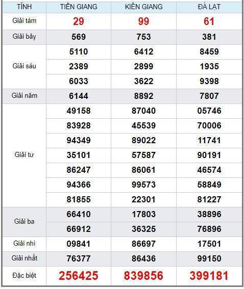 Sau đây là thống kê kết quả xổ số trong thời gian gần đây của nhà đài này: