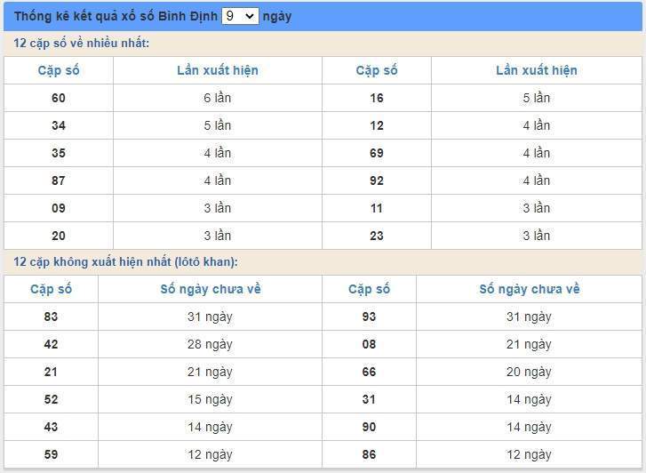 Sau đây là thống kê kết quả xổ số của nhà đài này trong tuần vừa qua: