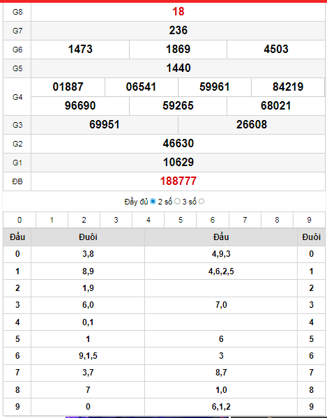 - Giải đặc biệt: đầu 5 – đuôi 9