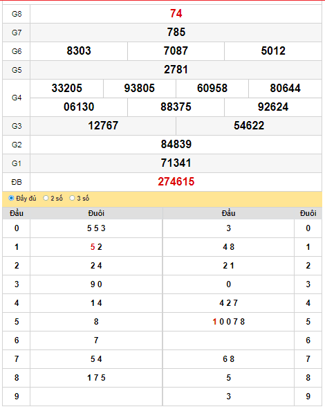 - Giải đặc biệt: đầu 4 – đuôi 4