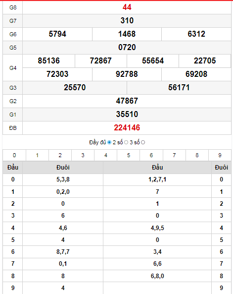 - Giải đặc biệt: đầu 8 – đuôi 4
