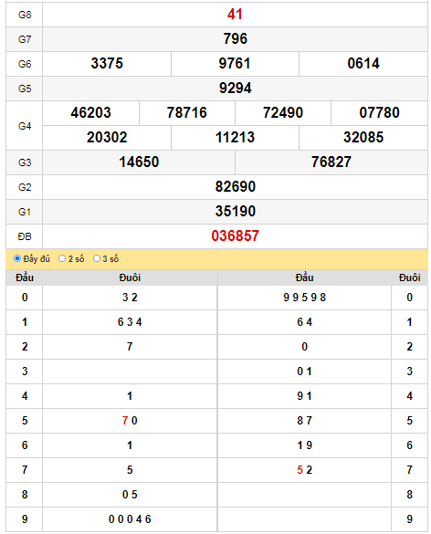 - Giải đặc biệt: đầu 7 – đuôi 2