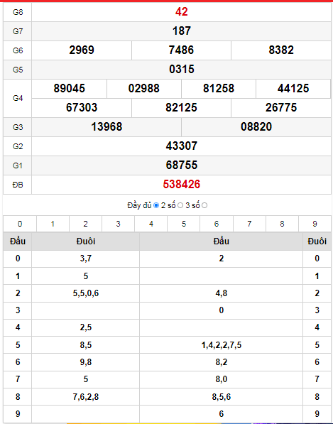 - Giải đặc biệt: đầu 7 – đuôi 8