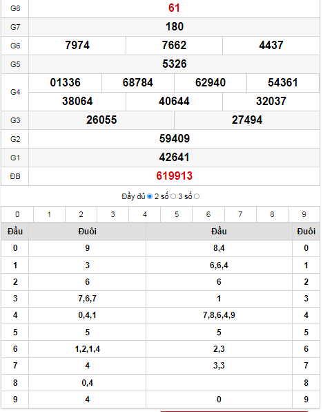 - Giải đặc biệt: đầu 7 – đuôi 5