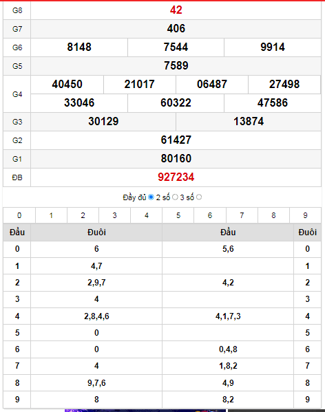- Giải đặc biệt: đầu 1 – đuôi 8