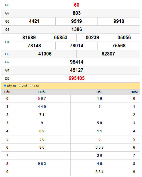 - Giải đặc biệt: đầu 0 – đuôi 3
