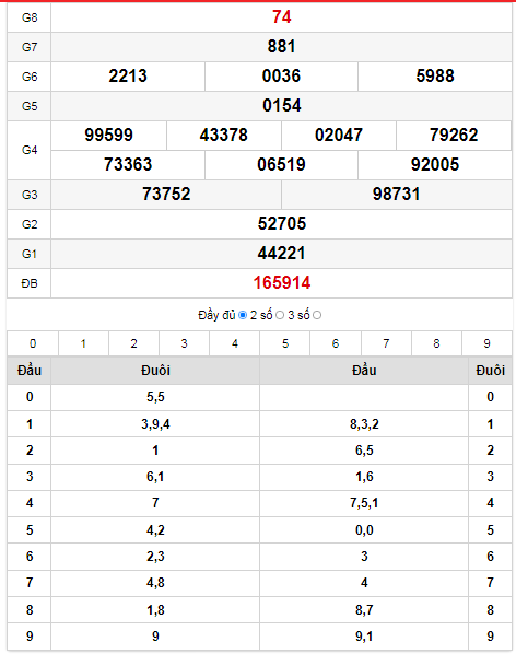 - Đuôi về nhiều nhất: 2