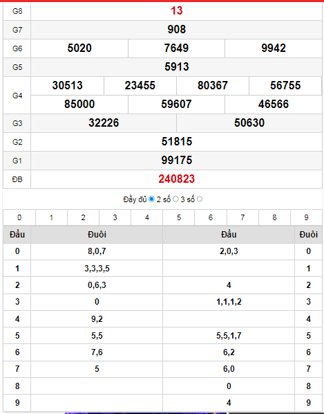 - Giải đặc biệt: đầu 6 – đuôi 8