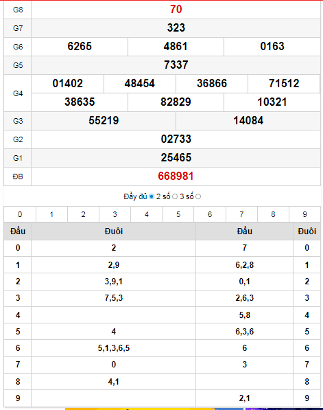 - Giải đặc biệt: đầu 9 – đuôi 5