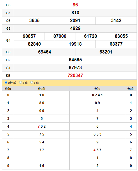 - Giải đặc biệt: đầu 9 – đuôi 0