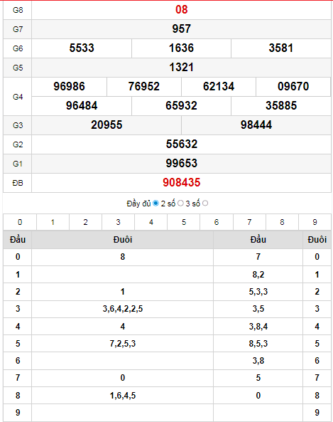 - Giải đặc biệt: đầu 7 – đuôi 9