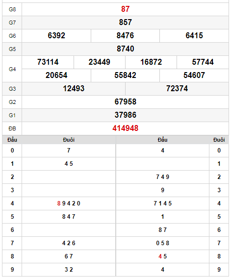 - Giải đặc biệt: đầu 8 – đuôi 3