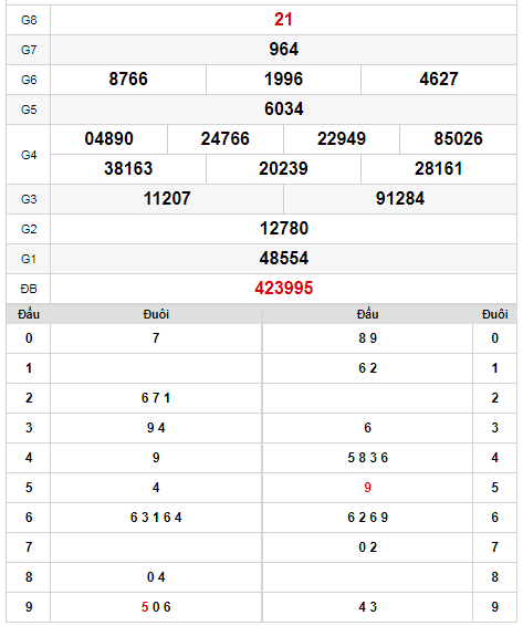 - Giải đặc biệt: đầu 4 – đuôi 4