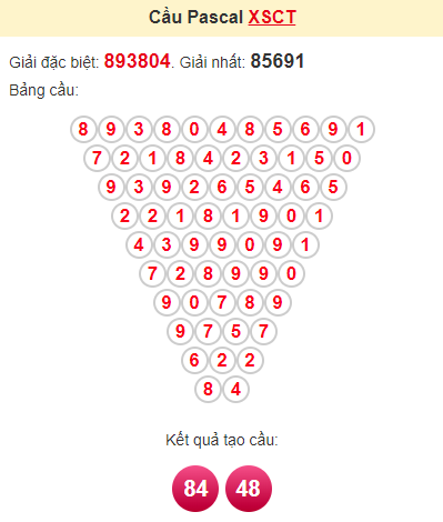 Thống kê cầu pascal xổ số CT tính theo công thức Pascale trong toán học dựa theo dữ liệu bảng kết quả ngày quay gần nhất giúp người chơi dễ dàng tính toán để chọn ra những bộ số may mắn của ngày hôm nay