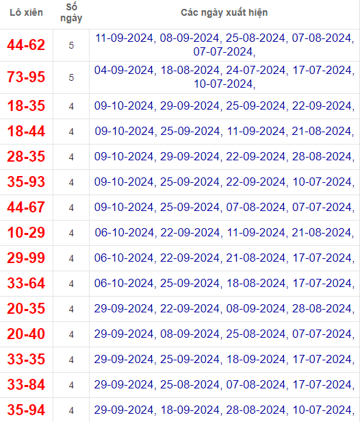 2. Thống kê các cặp lô xiên 2 hay về nhất