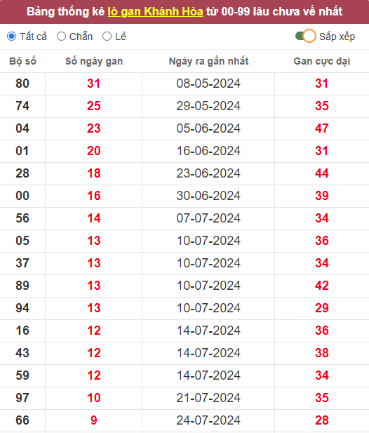 Dưới đây là tổng hợp số liệu thống kê kết quả xổ số Khánh Hòa bao gồm thống kê lô gan, các bộ số lô tô xiên về nhiều, thống kê tần suất 2 số cuối giải đặc biệt của XSKH để giúp người chơi dễ dàng phân tích và chọn ra những bộ số may mắn nhất ngày hôm nay